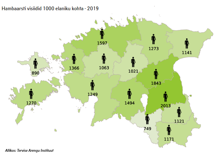 2019. aastal tehti Eestis kõigil hambaravi erialadel kokku ligi 1,97 miljonit visiiti, ehk ligi 1% enam kui aasta varem, selgus Tervise Arengu Instituudi avaldatud statistikast. 2019. aastal külastas Eesti elanik hambaravi keskmiselt 1,5 korda.