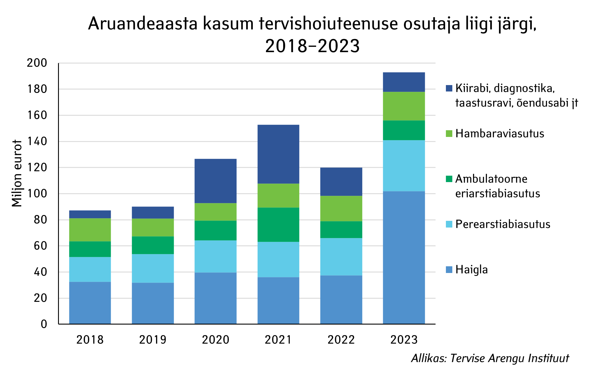 Tervise Arengu Instituudi avaldatud statistikast selgub, et tervishoiuteenuse osutajate tulude kiire kasv 2023. aastal tagas suure kasumi. Tervishoiu investeeringud olid ligi neljandiku suuremad kui aasta varem.